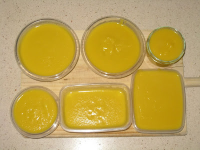 Llenamos los recipientes de que dispongamos para este efecto, dejamos enfriar e introducimos en el congelador hasta el momento que los necesitemos, que los calentaremos al baño maría.
