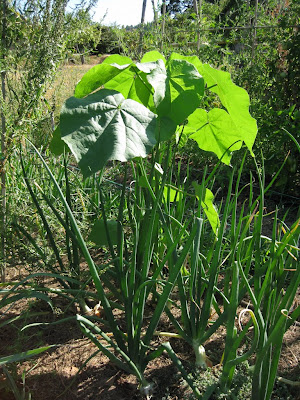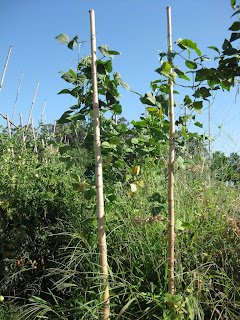 Esta foto representa en gran medida lo que lleva pasando en la huerta estos últimos meses. Las horas no dan para más y sólo hay tiempo para lo importante. Voy quitando hierbas allá donde veo que es imprescindible, en el medio de las cebollas, pimientos, calabacines y las voy dejando crecer, donde no molestan mucho o donde me es muy difícil quitarlas como estas de las judías, a pesar de todo tengo que decir que la cosecha de judías está siendo más abundante de lo esperado o de lo que se puede pensar viendo la foto y de ellas está dando buena cuenta el nuevo miembro de la familia.